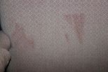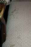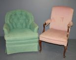 Two Upholstered Chairs, chairs have some surface stains; green chair 33" h., 31" w., 23" d. Two Upholstered Chairs, chairs have some surface stains; green chair 33" h., 31" w., 23" d.