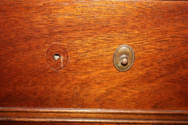 Kneehole Desk, single drawer in middle and four drawers on each side of kneehole; 30" h., 48" l., 24" d. Kneehole Desk, single drawer in middle and four drawers on each side of kneehole; 30" h., 48" l., 24" d.