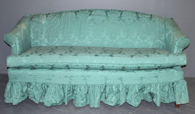 Sofa With Green Fabric Duvee Cover, original fabric on sofa is floral print; 33" h., 73" l., 22" d. Sofa With Green Fabric Duvee Cover, original fabric on sofa is floral print; 33" h., 73" l., 22" d.