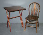 Wooden TV Tray and Wooden Chair; 34" h., tray is broken Wooden TV Tray and Wooden Chair; 34" h., tray is broken
