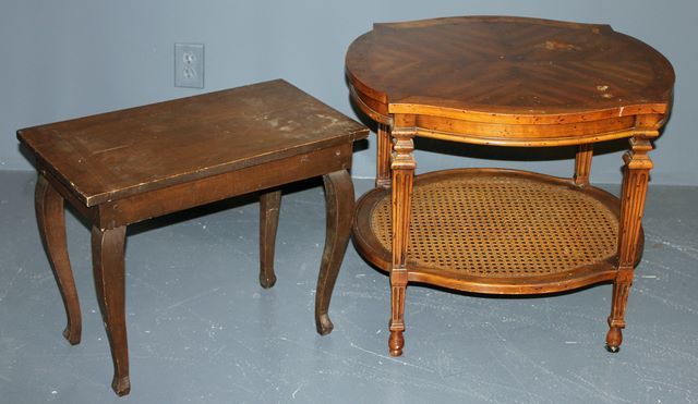 Two Wooden Side Tables, one two tier side table (23" h.) small table (19" h.) Two Wooden Side Tables, one two tier side table (23" h.) small table (19" h.)