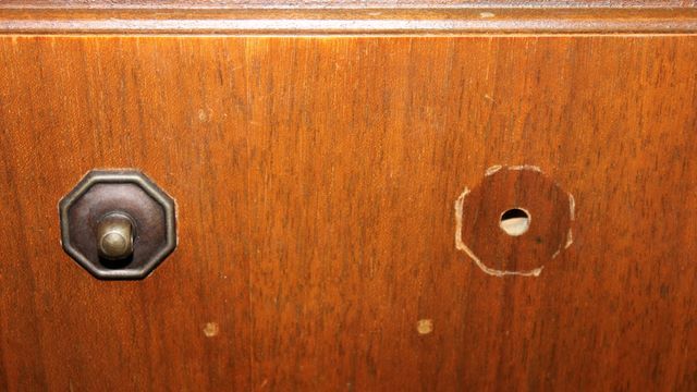 Wooden Filing Cabinet, four drawer, missing one handle; 29" hl., 61" l. Wooden Filing Cabinet, four drawer, missing one handle; 29" hl., 61" l.