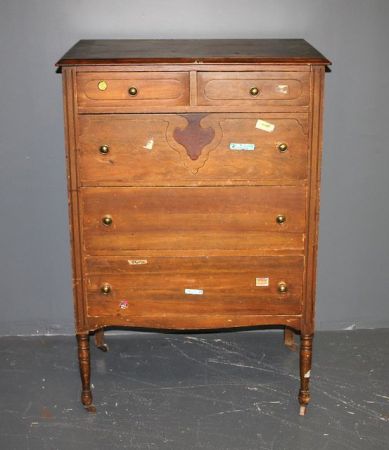 Chest of Drawers on Casters; 46 1/2" h., 32" w., 19 1/2" d., has surface scratches Chest of Drawers on Casters; 46 1/2" h., 32" w., 19 1/2" d., has surface scratches