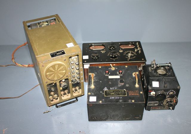 Group of Four Electrical Equipment Items; Radiola III-A, K-11 Compensating sight, US Army Interphone amplifier, Signal Corps radio receiver with 12V Dynamotor Group of Four Electrical Equipment Items; Radiola III-A, K-11 Compensating sight, US Army Interphone amplifier, Signal Corps radio receiver with 12V Dynamotor