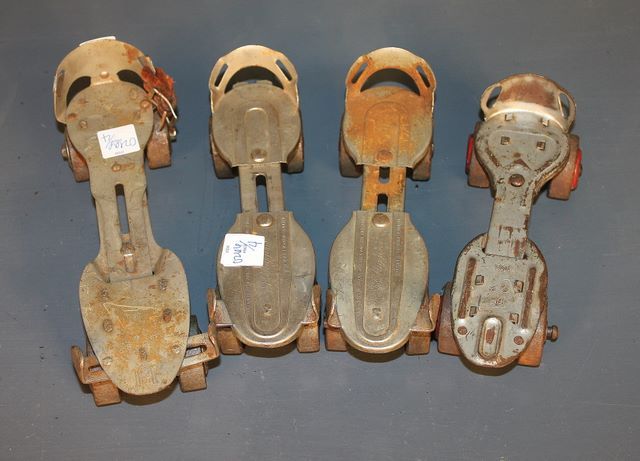 Pair of Vintage Roller Skates and Two Other Brand Roller Skates; J.C. higgins (Sears and Roebuck) Union Hardware Company, Louis Marx and Co. The Chief USA; all missing straps Pair of Vintage Roller Skates and Two Other Brand Roller Skates; J.C. higgins (Sears and Roebuck) Union Hardware Company, Louis Marx and Co. The Chief USA; all missing straps