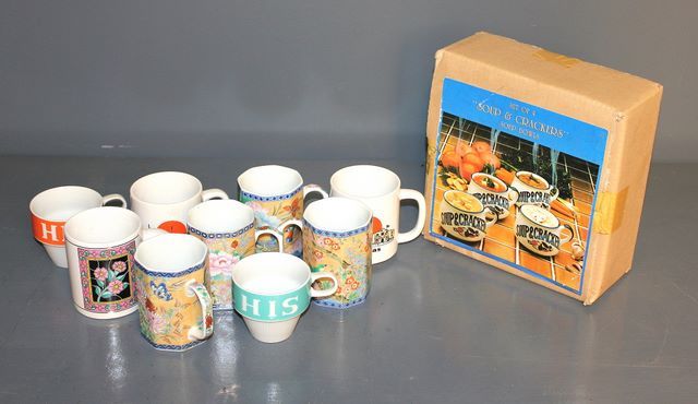 Group of Coffee and Soup Cups; four soup and cracker soup bowls, his and her coffee cups, two Texas coffee cups and four coffee cups Group of Coffee and Soup Cups; four soup and cracker soup bowls, his and her coffee cups, two Texas coffee cups and four coffee cups