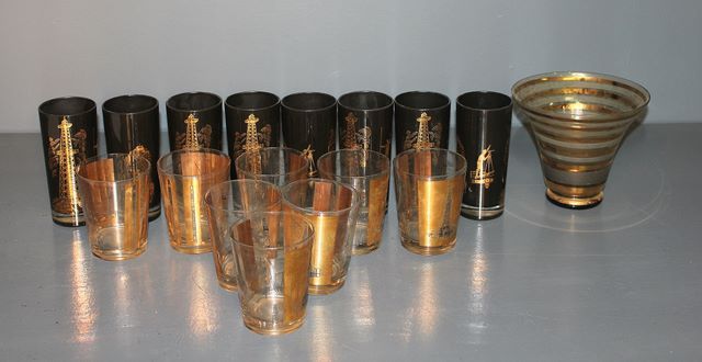 Group of Oil Well Glasses and Glass Vase; vase height 6" Group of Oil Well Glasses and Glass Vase; vase height 6"