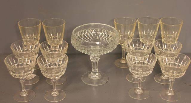 324 Group of Thirteen Various Size Glasses and Matching Compote Description