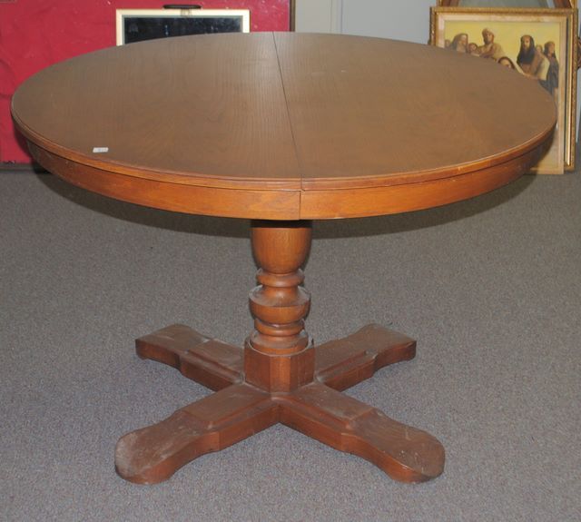 1940s Round Dining Table, with Two leaves. Watertown Table Slide Corporation (Wisconsin) 29"h, 43" dia. 1940s Round Dining Table, with Two leaves. Watertown Table Slide Corporation (Wisconsin) 29"h, 43" dia.