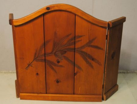 Wood Fire Screen; carved pine needles and cones 35" h. Wood Fire Screen; carved pine needles and cones 35" h.