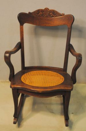 Cane Bottom Rocking Chair; 35" h., has missing back piece Cane Bottom Rocking Chair; 35" h., has missing back piece