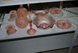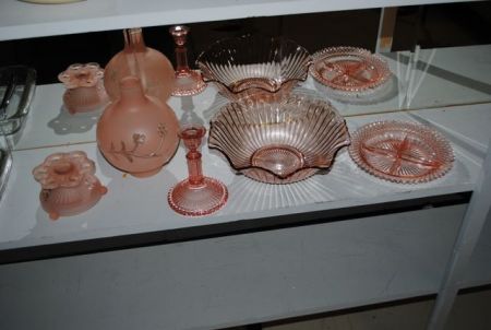 560 Pink Depression Glass Candle Holder, Sectional Dish, Bowl, Lamp Shade and Candle Holder Description
