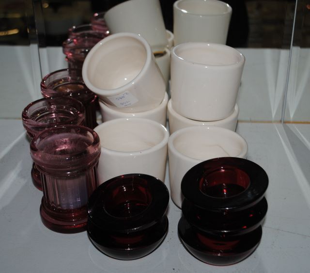 Group of Miscellaneous Items; Craft American Cups (4) (12), three pink candle holders and five ruby candle holders Group of Miscellaneous Items; Craft American Cups (4) (12), three pink candle holders and five ruby candle holders
