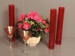 Three Ruby Vases, 16"h and Two Decorative Martini Glasses, 8"h Three Ruby Vases, 16"h and Two Decorative Martini Glasses, 8"h