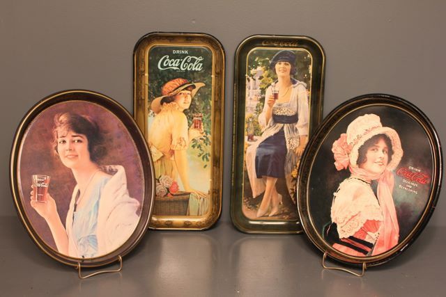 Group[ of Four Vintage Coca-Cola Trays. Two Rectangular Trays 8 1/2"w 19"l, Two Oval Trays 12 1/2"w 15"l. Group[ of Four Vintage Coca-Cola Trays. Two Rectangular Trays 8 1/2"w 19"l, Two Oval Trays 12 1/2"w 15"l.