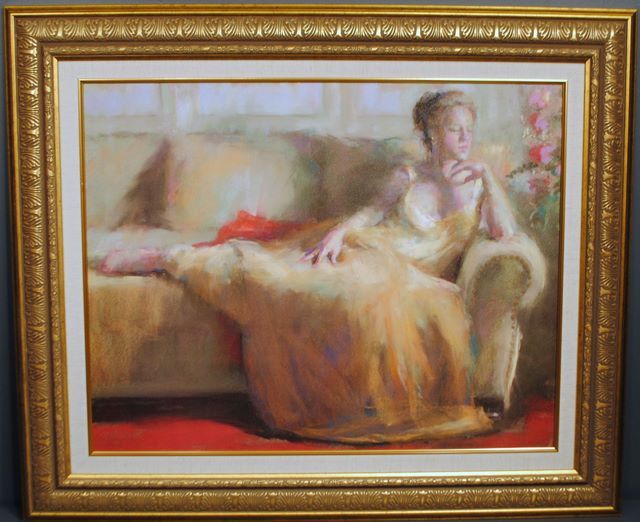 "Beauty in a Yellow Dress" framed Canvas Print. Framed in ornate gold frame. 36"w 30 1/2"h. "Beauty in a Yellow Dress" framed Canvas Print. Framed in ornate gold frame. 36"w 30 1/2"h.