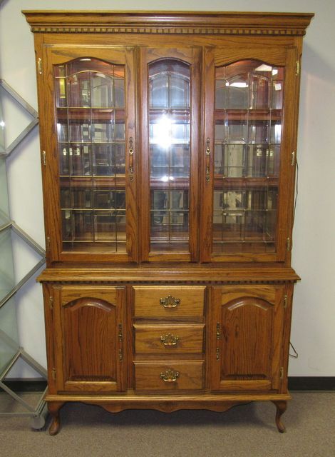 333 Dobbs Industries Illuminated China Cabinet with Leaded Glass Doors, Three Drawers and Lower Double Doors