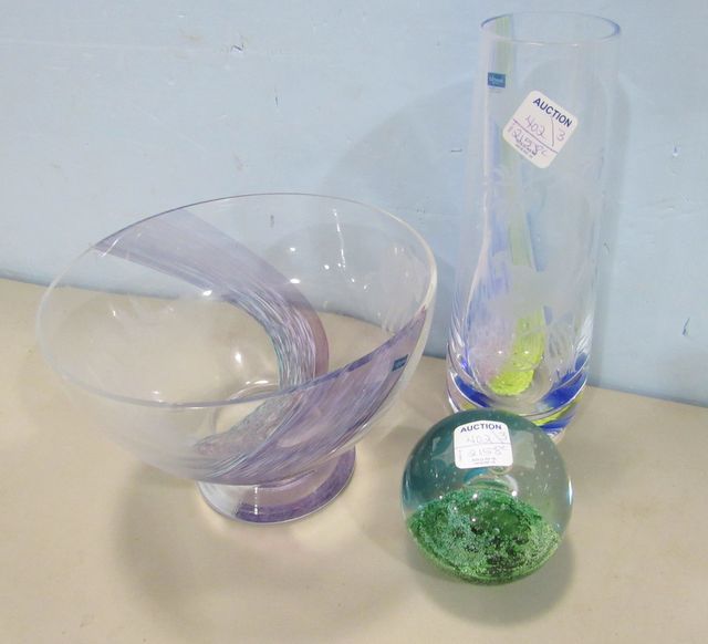 402 Caithness Scottish Etched Vase, Etched Bowl and Paperweight