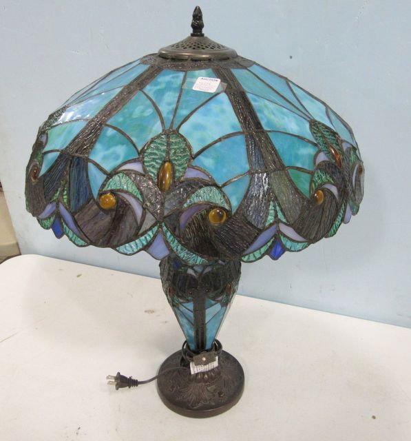 404 Leaded Shade and Body Lamp with Bronzed Accents