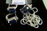 627 Rectangular Shaped Emerald Cut Blue Stone Earring and Necklace Set