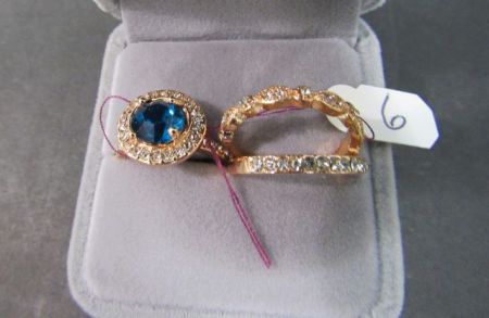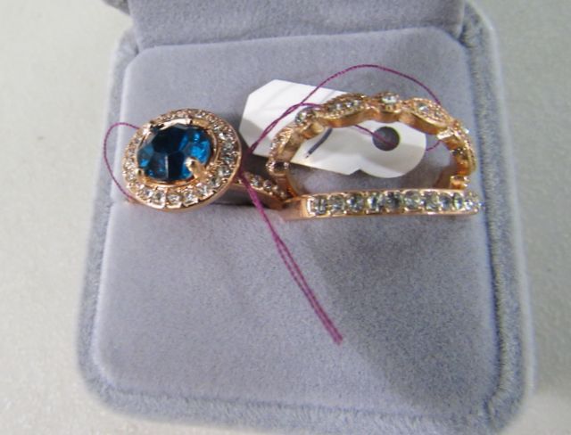 634 Round Clear Stone Halo Rose Setting Ring with Two Rosetone Clear Stone Bands