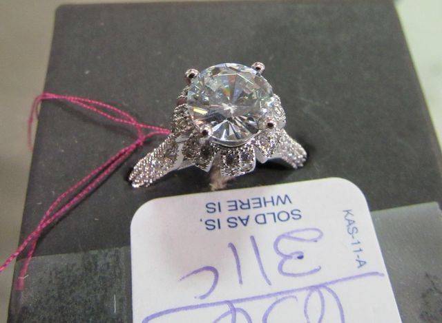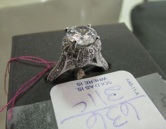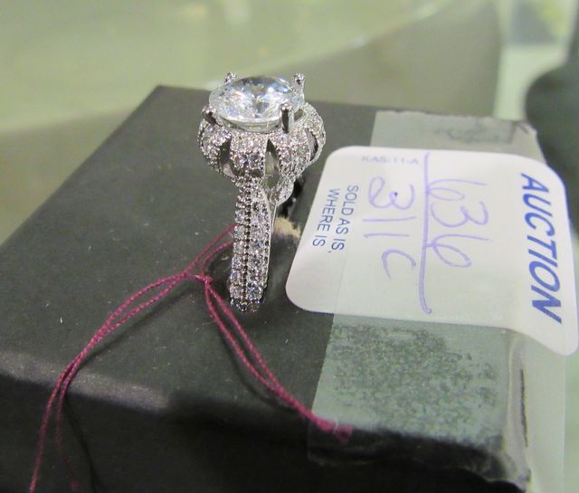 636 Clear Center Round Stone Ring with a Sivertone Crown Top Setting and a Clear Stone Accented Shank
