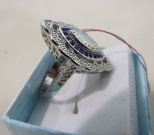 637 Marquis Shaped Silvertone Ring with Blue Enamel Accents