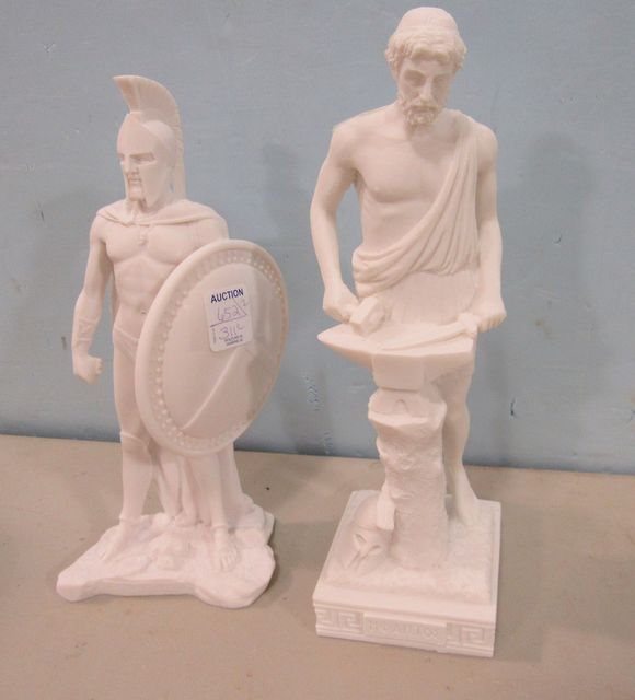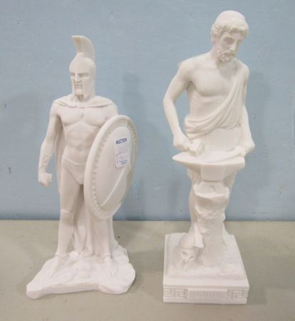 652 Spartan King Leonidas Alabaster and Resin Mixed Figure and Greek God Hephaestus Alabaster and Resin Mixed Figure