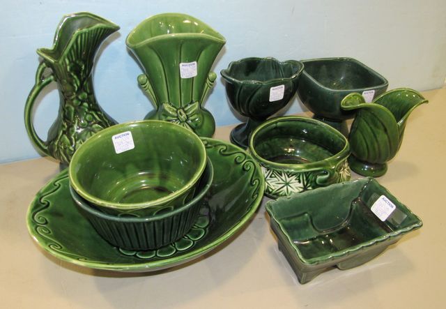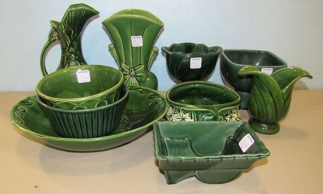Includes the following marks: MCP 1968, 450, F-44, Floraline 506, F-10, McCoy, 819 USA, 827 USA, F-33, USA pitcher. Includes the following marks: MCP 1968, 450, F-44, Floraline 506, F-10, McCoy, 819 USA, 827 USA, F-33, USA pitcher.