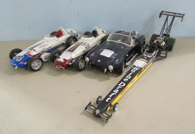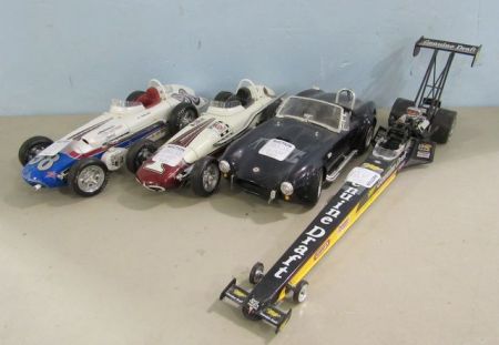 Includes: Don "The Snake" Prudhomme Dragster, a Shelby Cobra 427S/c, two die cast Indy cars (#9493, #1602). Includes: Don "The Snake" Prudhomme Dragster, a Shelby Cobra 427S/c, two die cast Indy cars (#9493, #1602).