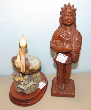 1101 Andrea by Sadek Brown Pelican On Stand with a Resin Miniature of a Cigar Store Indian