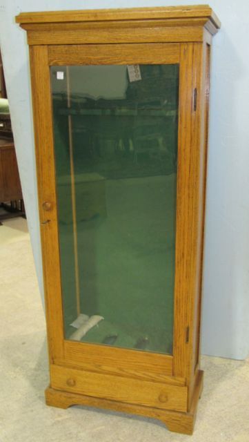 Measures 28" w x 14" d x 67" h. Has key. Measures 28" w x 14" d x 67" h. Has key.