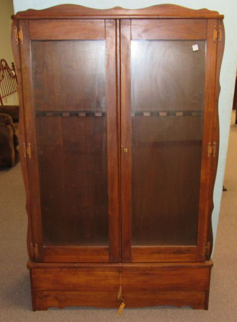 Has key. Measures 41" w x 10" d x 66" h. Has key. Measures 41" w x 10" d x 66" h.