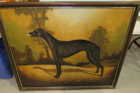 302 H. Hunting Signed Painting of Whippet Dog Framed