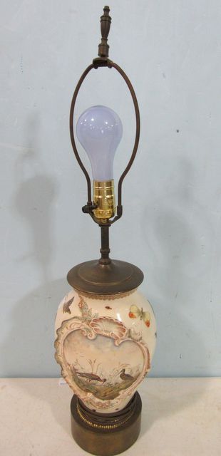 424 Porcelain Lamp with Hand Painted Birds and Butterflies