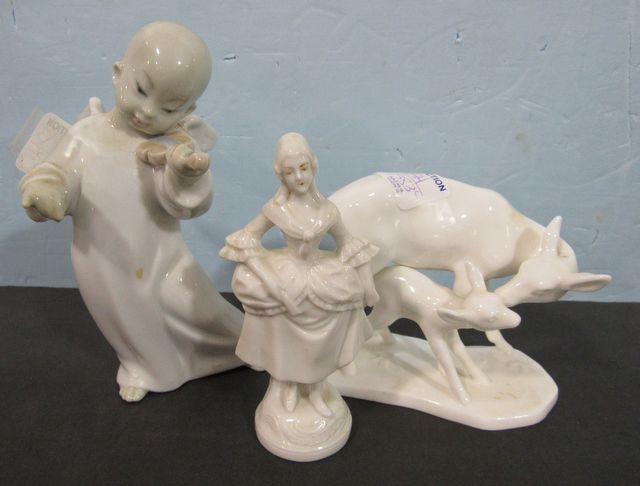 654 Noritake Mother's Day 1974 Figurine, a Lladro Angel #4536 with Repaired Wing and a Italian Pottery Lady