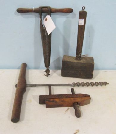 1131 Wooden Mallet, Two Hand Held Drills and a Wooden Vise