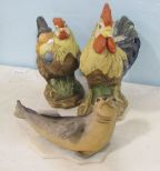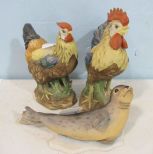 1153 Lefton China Rooster and Hen, and a Kaiser Golden Crown Seal