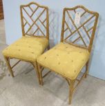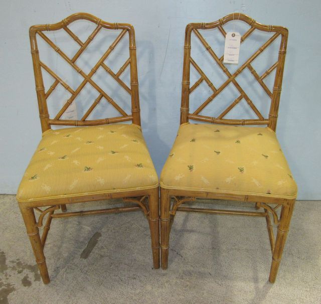510 Pair of Councill Craftsman Upholstered Seat Faux Bamboo Chippendale Style Arm Chairs