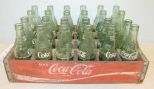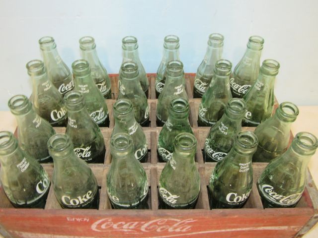 484 Vintage Coca Cola Crate with Eighteen Empty Green Bottles