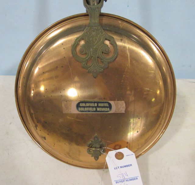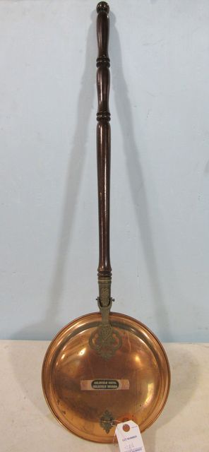 584 Copper Bed Warmer and a Brass Magazine Rack