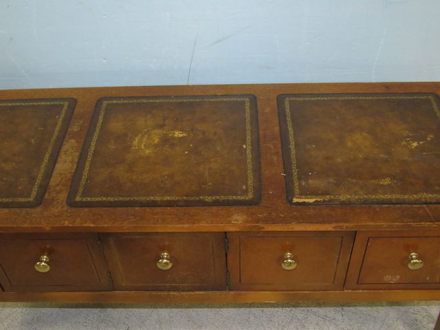 Has a lot of wear. measures 52" w x 18" d x 21" h. Has a lot of wear. measures 52" w x 18" d x 21" h.
