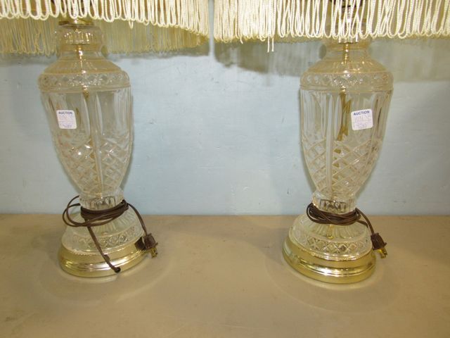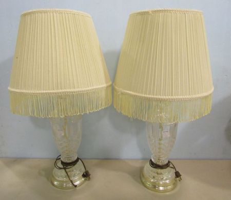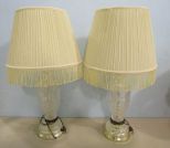 1031 Matching Brass Plated and Glass Lamps with Shades