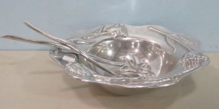 589 Mariposa Brilliant Pewter Floral Salad Bowl with Utensils