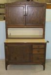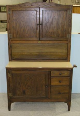 538 Oak Hoosier Cabinet with a Taupe Enamel Serving Surface