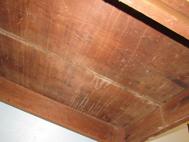 Measures 33" w x 48" d x 29"h. Has a warped split top. Measures 33" w x 48" d x 29"h. Has a warped split top.