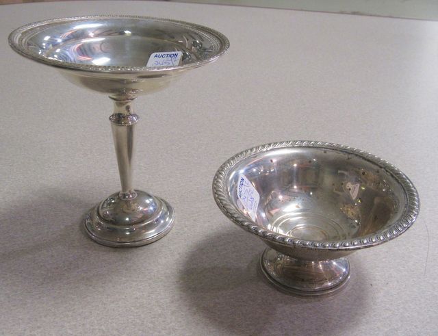 Includes a taller compote with a reticulated edge and a shorter nut dish. Includes a taller compote with a reticulated edge and a shorter nut dish.