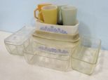747 Vintage Lot of Fire King Mugs, and Refrigerator Boxes Plus Miscellaneous Baking Glass