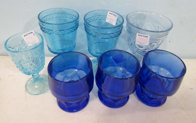 751 Three Anchor Hocking Glasses, Three Aqua Colored Glasses and a Pale Blue Glass