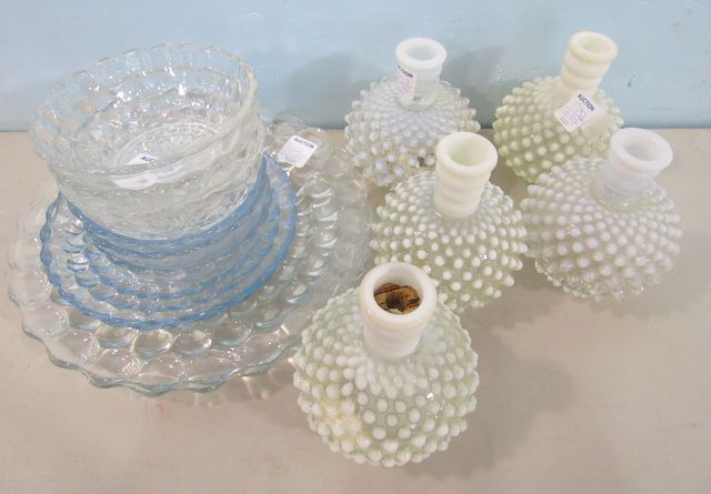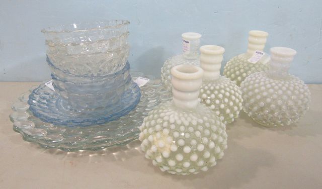 752 Five Hobnail Fenton Perfume Bottles without Stoppers and a Group of Bubble Pattern Glass